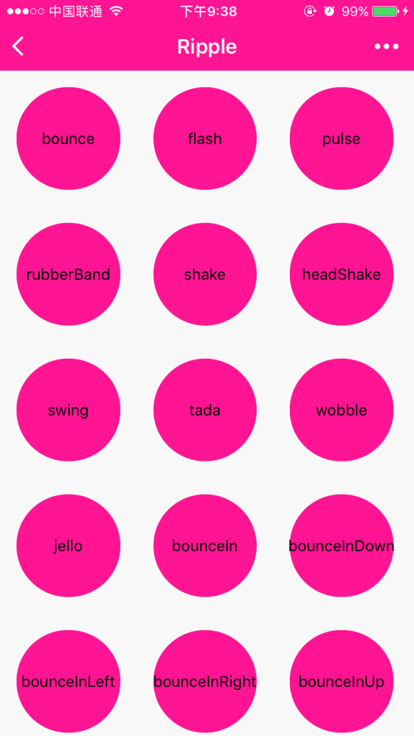 你可以查看根目錄下的 DEMO 項目,為所有 Ripples.wxss 的綜合展示,如圖: